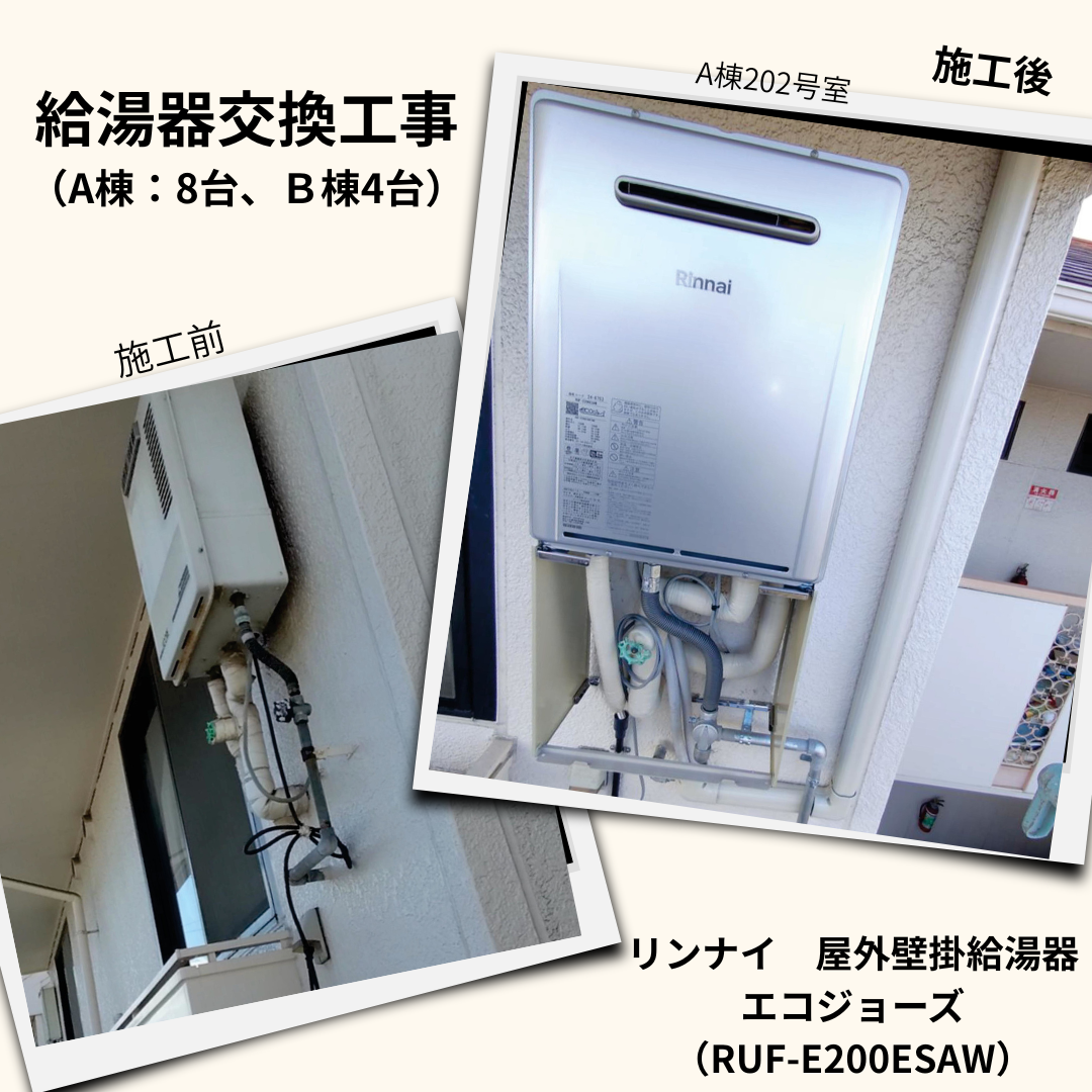 S集合住宅の給湯器交換工事(A棟:8台・B棟:4台)