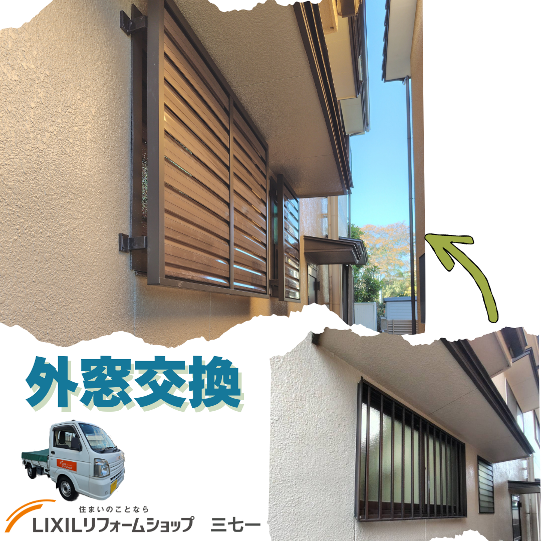 Y様邸の外窓交換・目隠しルーバー設置工事が完成しました。目隠しルーバーセキュリティフィルター80(LIXIL)※羽根部は固定式です。通気性を確保しながらしっ…